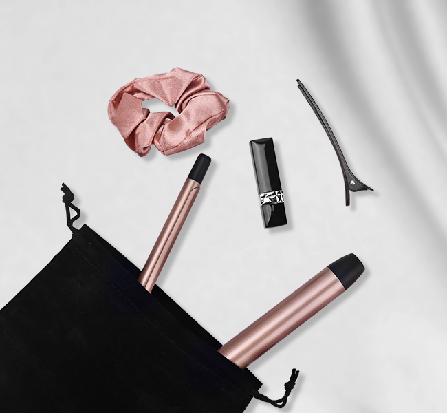 The curling iron attachments are able to hold my hair without having it slipping out of their clamps . The curling iron rod attachments work really great as well . Some of the curling iron attachments as you are able to see have little stands attached to them to keep them elevated for they don��t lay straight down and burn anything (a heat resistant mat is still recommended when using all heated hair styling products ).I absolutely love the idea of getting rid of the blow out looking hair brush / curler since my hair has a tendency to get tangled in them . The hair straightener attachment works but not as good as my regular hair straightener. The cord on the main body is the machine is 360 and rotates nicely while I style my hair as well . The body gets a bit warm but no worries because with this hair styling product you get a heat resistant glove , as well as a pink silky scrunchy, two hair styling clips and a traveling velvet fabric holder for the device .