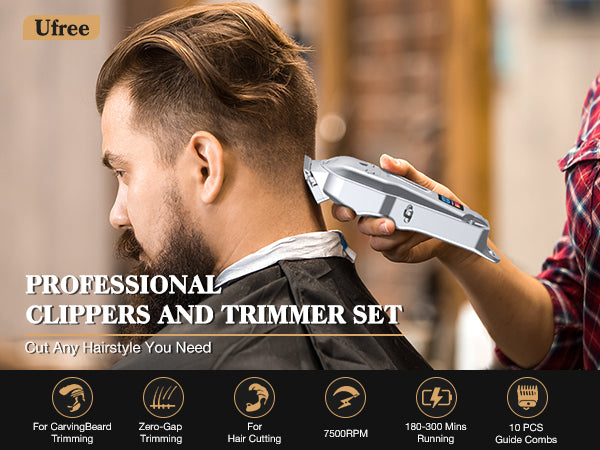 Professional hair and beard grooming kit for home or salon use. Includes hair clippers, detail trimmer, and all essential accessories for precise styling.
