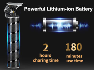 The hair liners with powerful Lithium-ion battery with running time of at least 𝟏𝟖𝟎 minutes after 2 hours full charged.