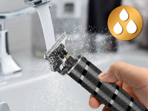 This hair edgers for men is easy to clean. Rinse the blade under runing water directly after grooming. (𝐓𝐔𝐑𝐍 𝐎𝐅𝐅 the trimmer before cleaning)