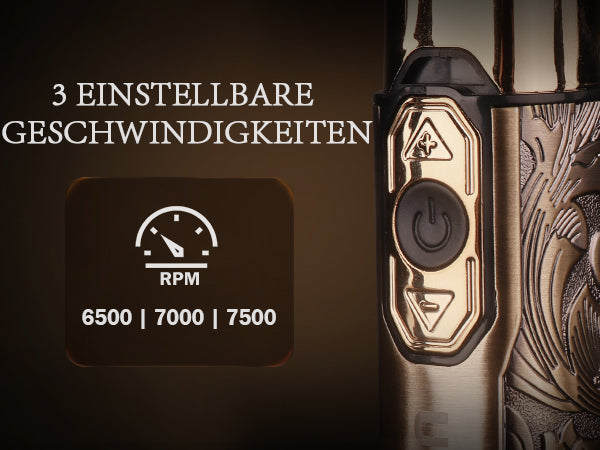 6500-7000-7500RPM, 3 adjustable speeds to meet your shaving needs.