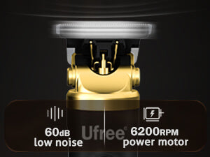- R-shaped blade design prevents nicks; low noise (<60 dB).