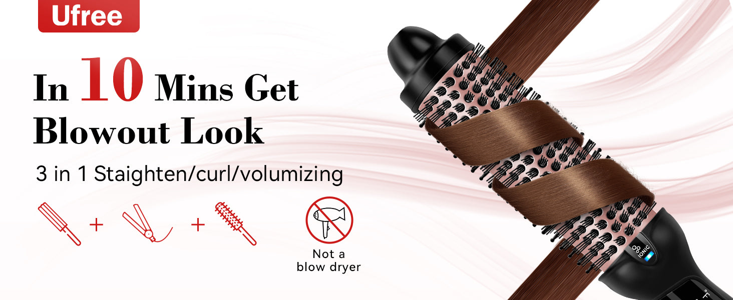 Professional thermal or curling brush for creating smooth blowouts, sleek straight styles, or voluminous curls. Suitable for daily styling or special occasions.
