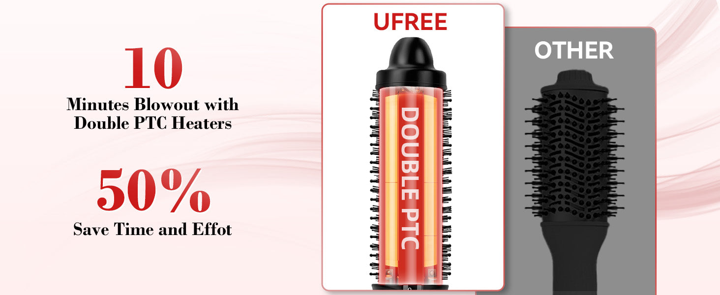 - Dual PTC fast heating for quick styling, ready in 30 seconds.